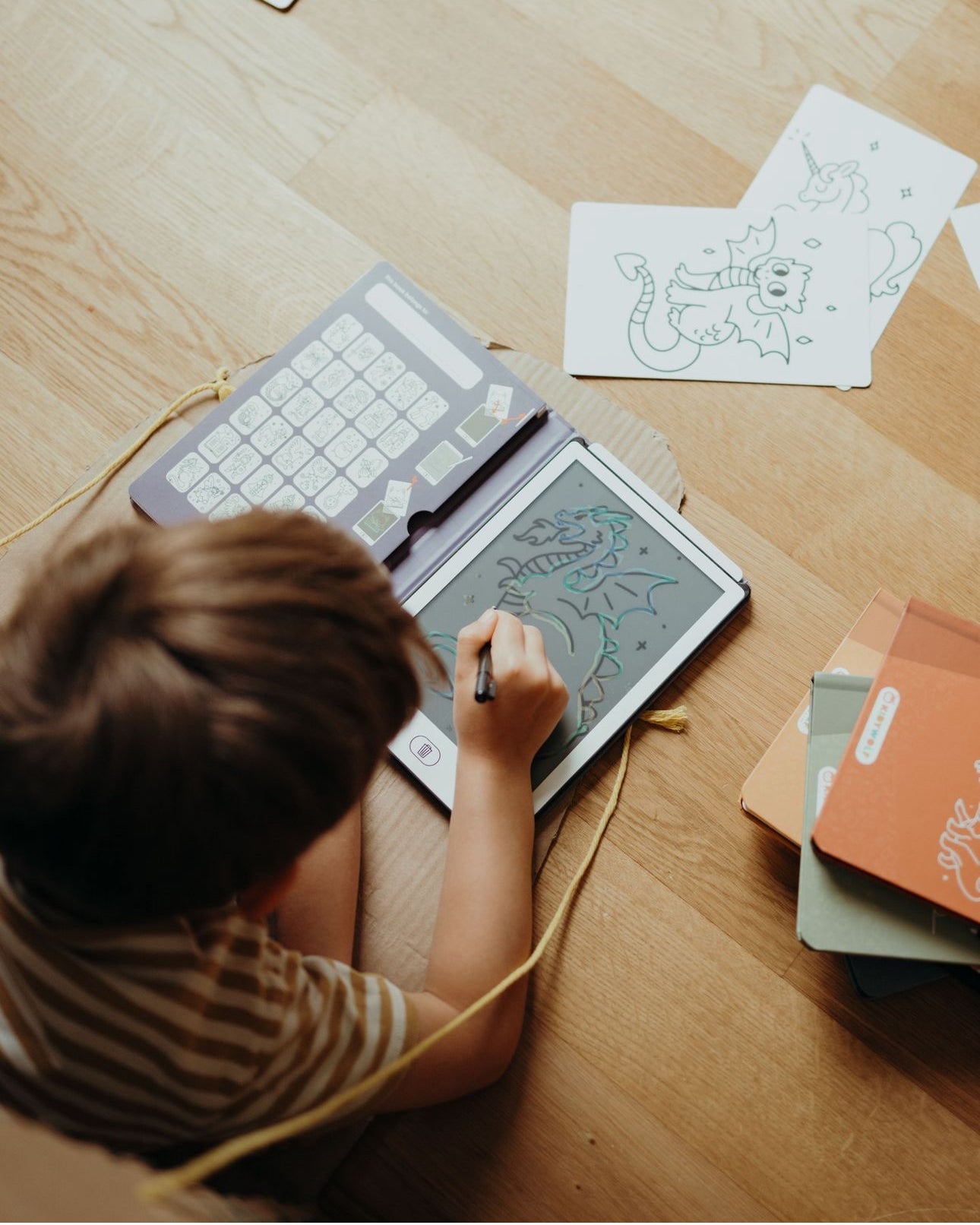 Bloco de desenho com papel vegetal. Para estimular a criatividade e incentivar a aprendizagem autónoma, este caderno de desenho com ecrã LCD é o companheiro perfeito para os jovens artistas em movimento.