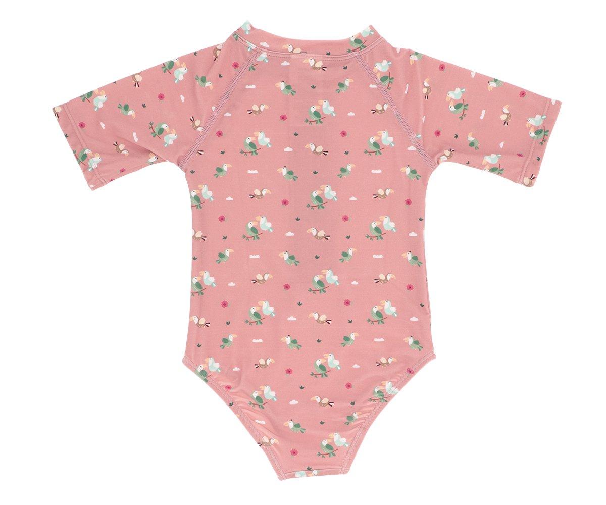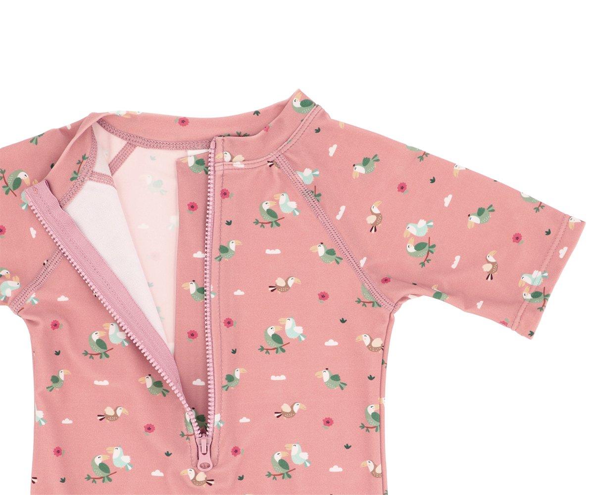 Os fatos de banho com fecho frontal e estampados foram confeccionados com um tecido especial que protege a pele dos mais pequenos contra os raios solares.